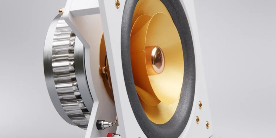 Un’altra soluzione unica è una sospensione inferiore comunemente chiamata “spider”. Dopo aver ascoltato i prototipi con molteplici soluzioni, anche gli spider più avanzati disponibili per i produttori di altoparlanti, abbiamo convenuto che dovevamo sviluppare “in house” la nostra soluzione. Il problema con lo spider è che essendo un ammortizzatore, dissipa l’energia, che altrimenti verrebbe trasferita nel cono dell’altoparlante. Rendendo l’altoparlante debole e fastidioso. Qapevamo che era un modo inaccettabile di procedere. Volevamo un materiale che non assorbisse energia e la trasferisse solamente.